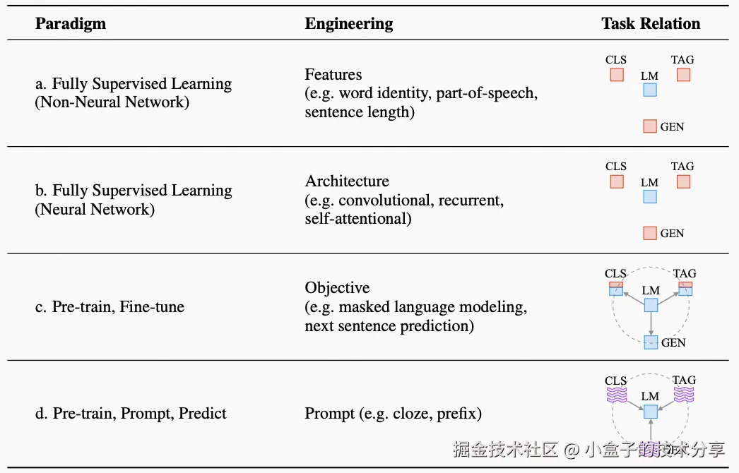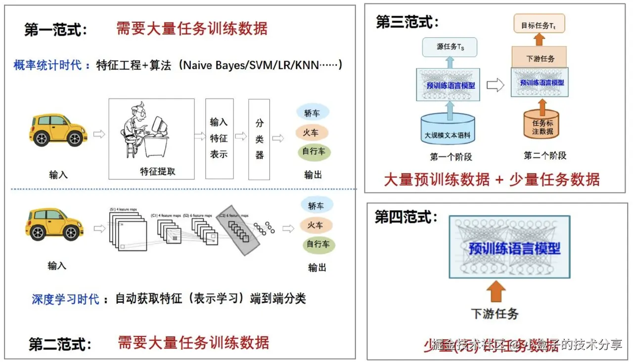 NLP 发展到今天已经进入到了 LLM 的时代,随着模型越来越大。NLP 也进入到了新的研究范式里面。学术界按发展时间线将 NLP 归纳到四个范式: