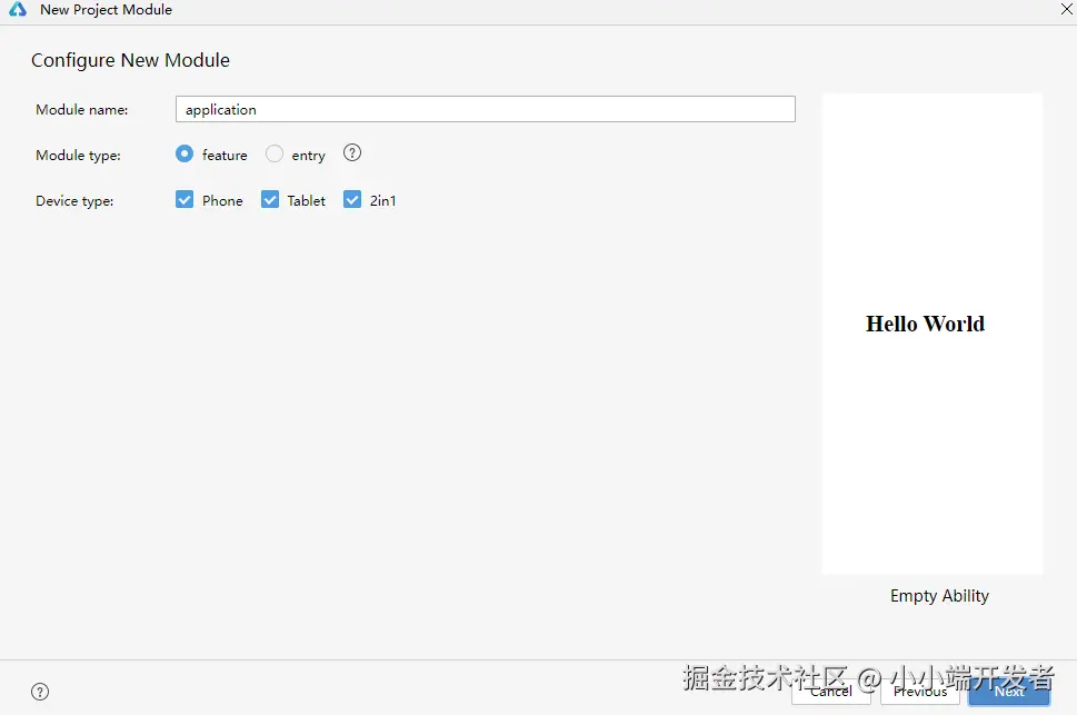 Device type:选择模块的设备类型,如果新建模块的Module type为feature,则只能选择该工程原有的设备类型;如果Module type为entry,可以选择该Module支持的其他设备类型。