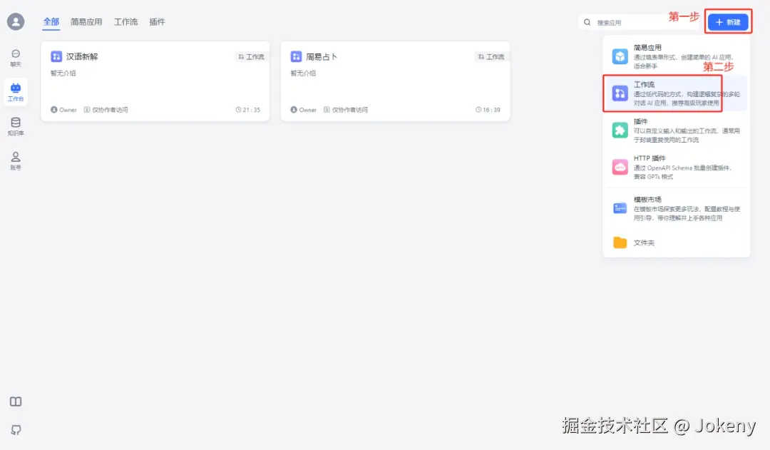 进入工作台,创建一个新的工作流,如下图: