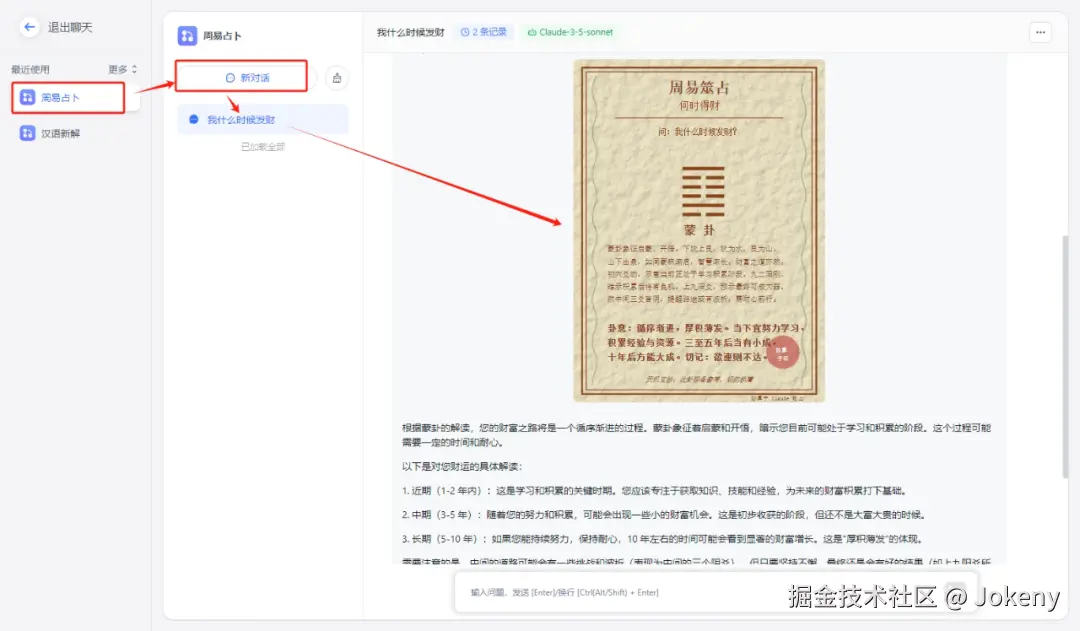 下面继续使用 FastGPT 实现“周易占卜”,话不多说,先看效果: