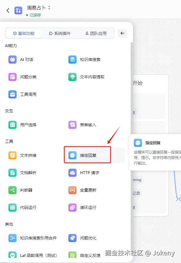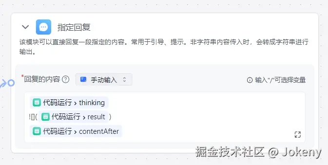 d. 最后,添加【指定回复】节点来格式化输出