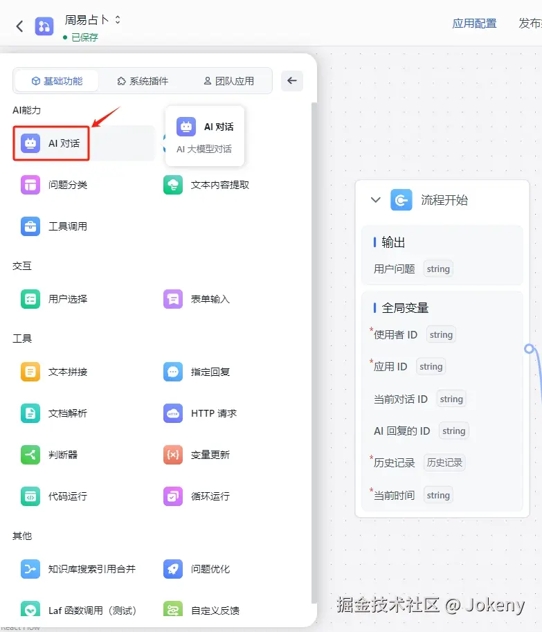 a. 首先,添加【AI对话】,如下图: