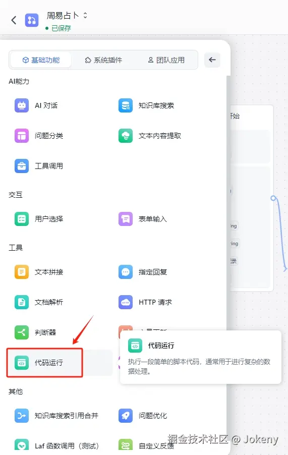 c. 接着,添加【代码运行】节点
