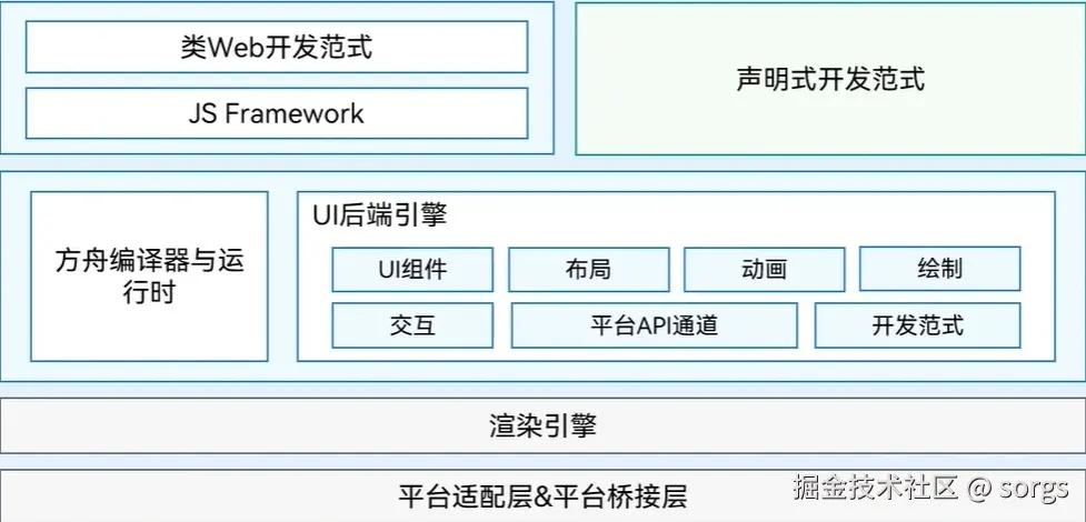 HarmonOS 支持业界主流跨平台开发框架,通过多层的开放能力提供统一接入标准,实现三方框架快速接入