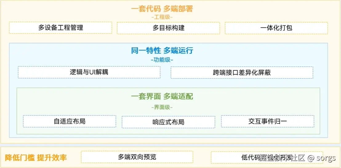 具体来说,指的是:一个工程一次开发上架,多端按需部署