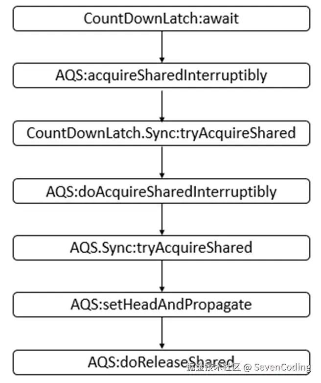 所以,对CountDownLatch的await调用大致会有如下的调用链。