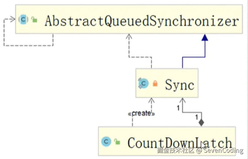 CountDownLatch没有显示继承哪个父类或者实现哪个父接口, 它底层是AQS是通过内部类Sync来实现的。