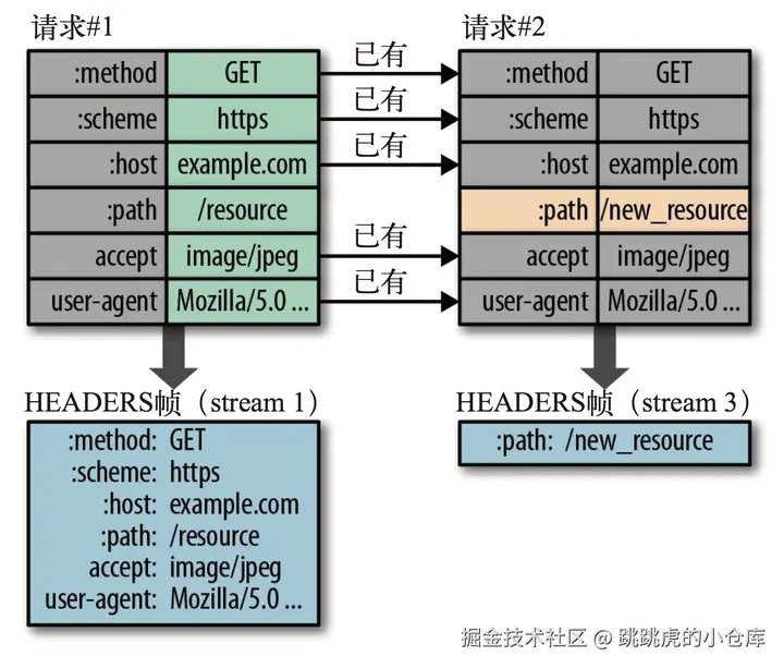 HTTP2.0会压缩头部,如果同时有多个请求其头部一样或相似,那么协议会消除重复部分。