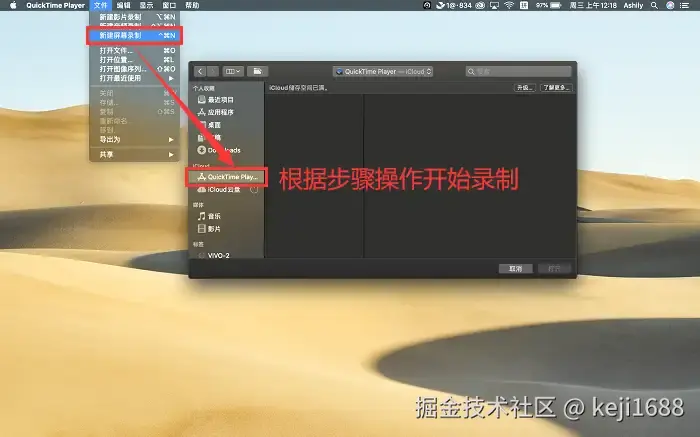 在Mac电脑上也同样有自带的录屏功能,名字为QuickTime Player。使用时,我们可以点击打开该程序,然后选择【新建屏幕录制】即可进行录屏。