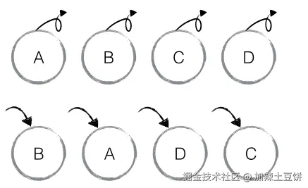 key 属性是用来解决同一层级下节点重用问题的。在展开分析之前,我们先结合到现在为止对 Diff 过程的理解,来思考这样一种情况,如下图所示: