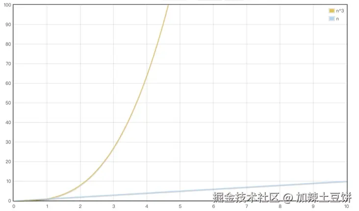 从传统的 Diff 算法发展演变历程来看,即使在最前沿的算法中,该算法的时间复杂程度也高达 O(n^3),其中 n 是树中元素的数量。时间复杂度 O(n^3) 是什么概念?这在算法中叫做指数复杂度,随着问题规模 n 的增加,运行时间的增长趋势将呈现为指数级增长。数学中的指数增长是非常恐怖的,在刚开始的时候,增长不明显,它和线性增长差不多,但随着时间的推移,指数增长的威力会开始惊人的显现出来。