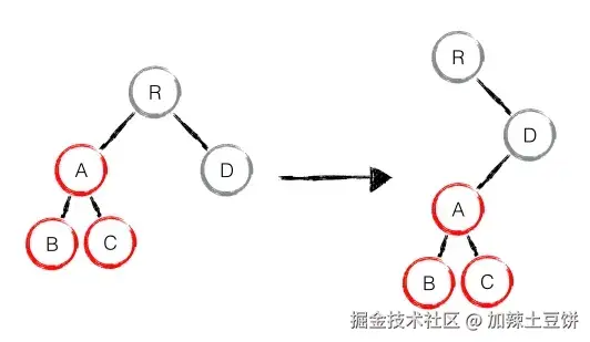 - 然后比较 D 这个位置,对比 D 和 C,发现前后的类型不一致,直接删掉 D 重建 C;