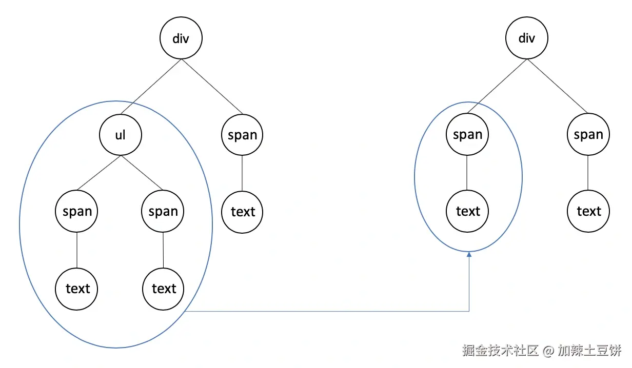 只有确认节点类型相同后,React 才会在保留节点对应子树的基础上,尝试向更深层次去 Diff。这样一来,便能够从很大程度上减少 Diff 过程中冗余的操作。