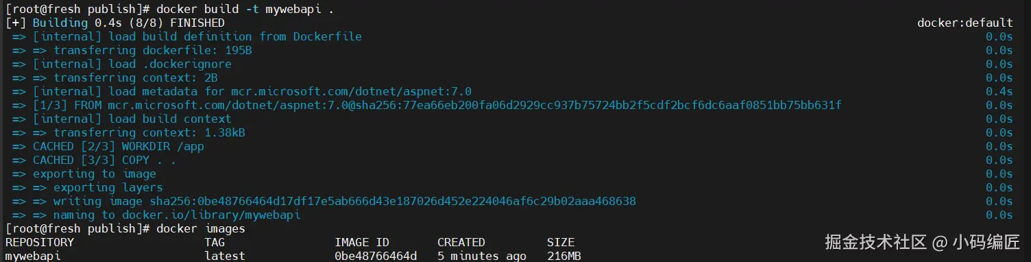 再把publish上传到服务器,然后cd到publish目录,执行构建命令,在执行启动命令