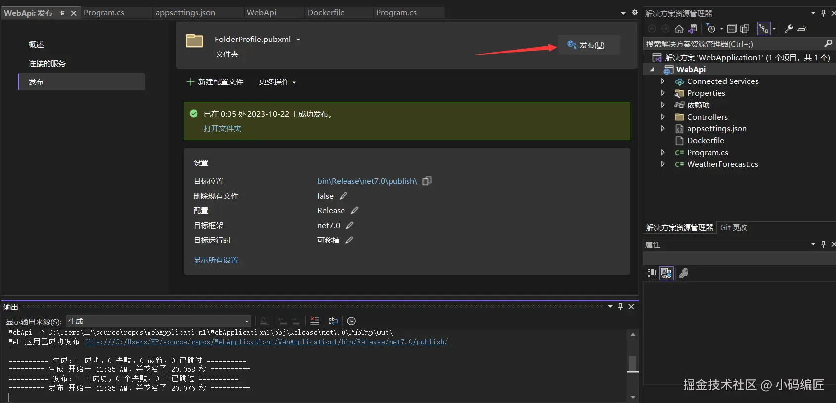 然后发布项目,发布完以后,检查publish目录是否有dockerfile文件