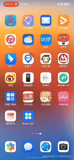Android Studio或者VSCode打开flutter项目,即可运行到目标设备。可以看到整体运行还是很丝滑的(录屏转GIF有压缩和损失)。