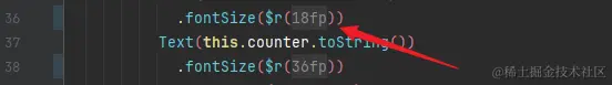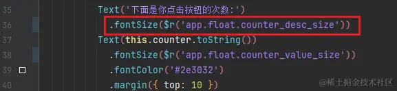 通过 $r('app.float.xxx') 可以访问资源中提供的尺寸值,如下所示为计数器的描述和数值,设置文字大小: