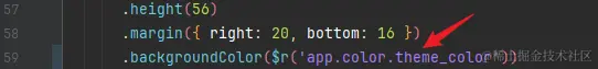 比如计数器中,按钮颜色、AppBAr 颜色都是一样的,我们想要定义一个主题色,方便统一维护。可以在 color.json 中增加一个 theme_color 的元素,指定对应的值, 在代码中通过 $r 访问资源设置即可