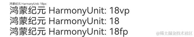 Text('鸿蒙纪元 HarmonyUnit: 18vp').fontSize('18vp')
