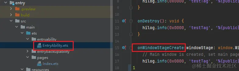 首先我们需要在窗口启动时,将窗口设置为全屏。这个操作需要在 entry/src/main/ets/entryability/EntryAbility.ets 文件中处理。 onWindowStageCreate 回调可以监听到窗口创建的时机: