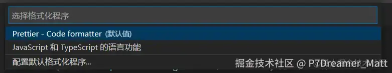 再次打开“使用...格式化文档”,此时 Prettier 变成默认值,设置成功。