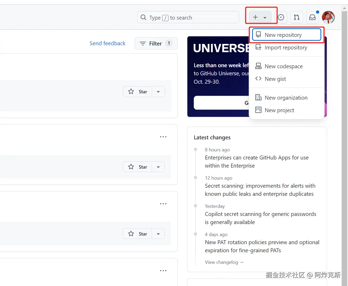Generate new token按钮开始创建 - 填写私钥名称和过期时间