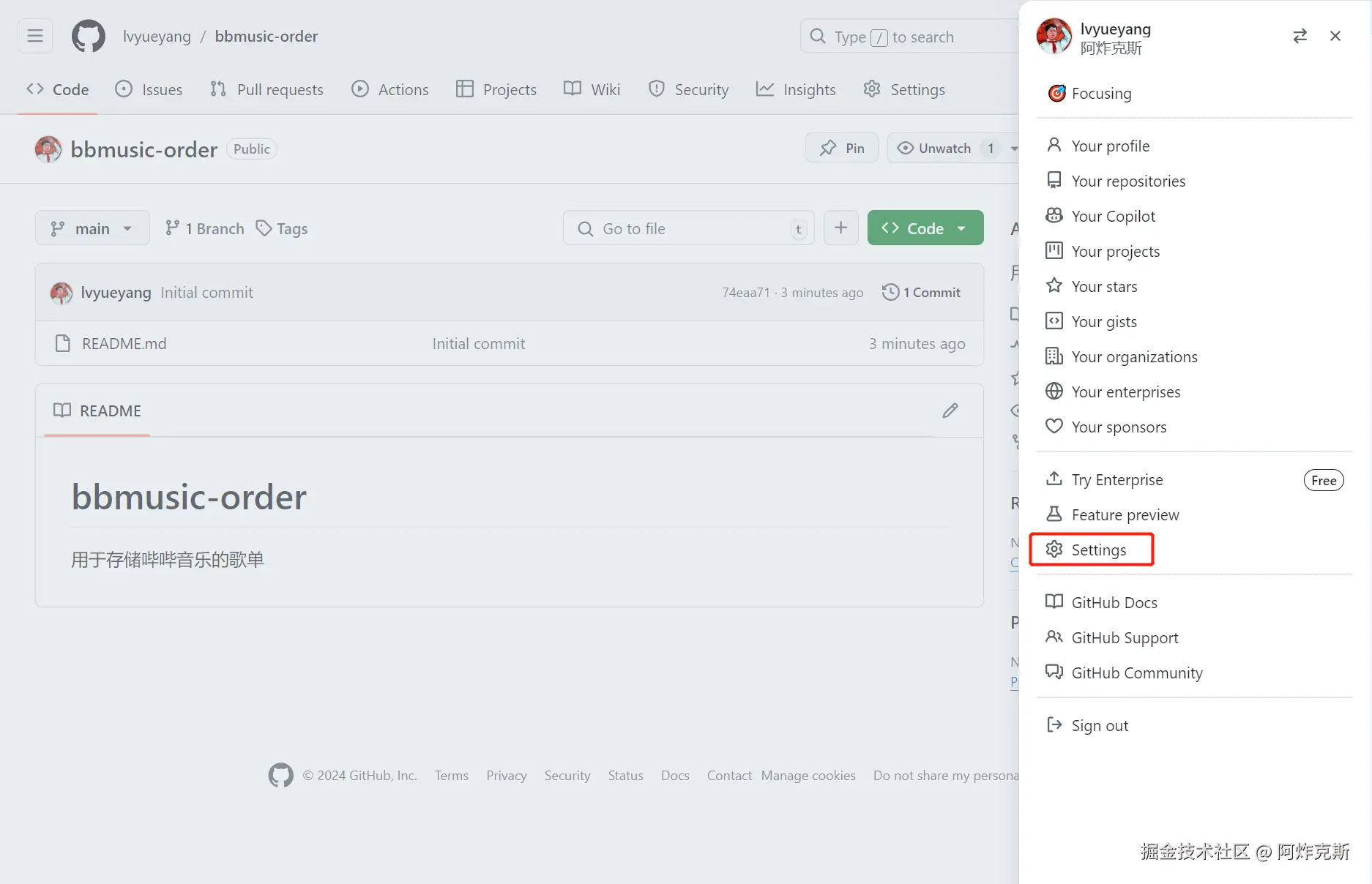 3. 创建一个私钥,用于读写仓库,从而保存歌单到仓库中