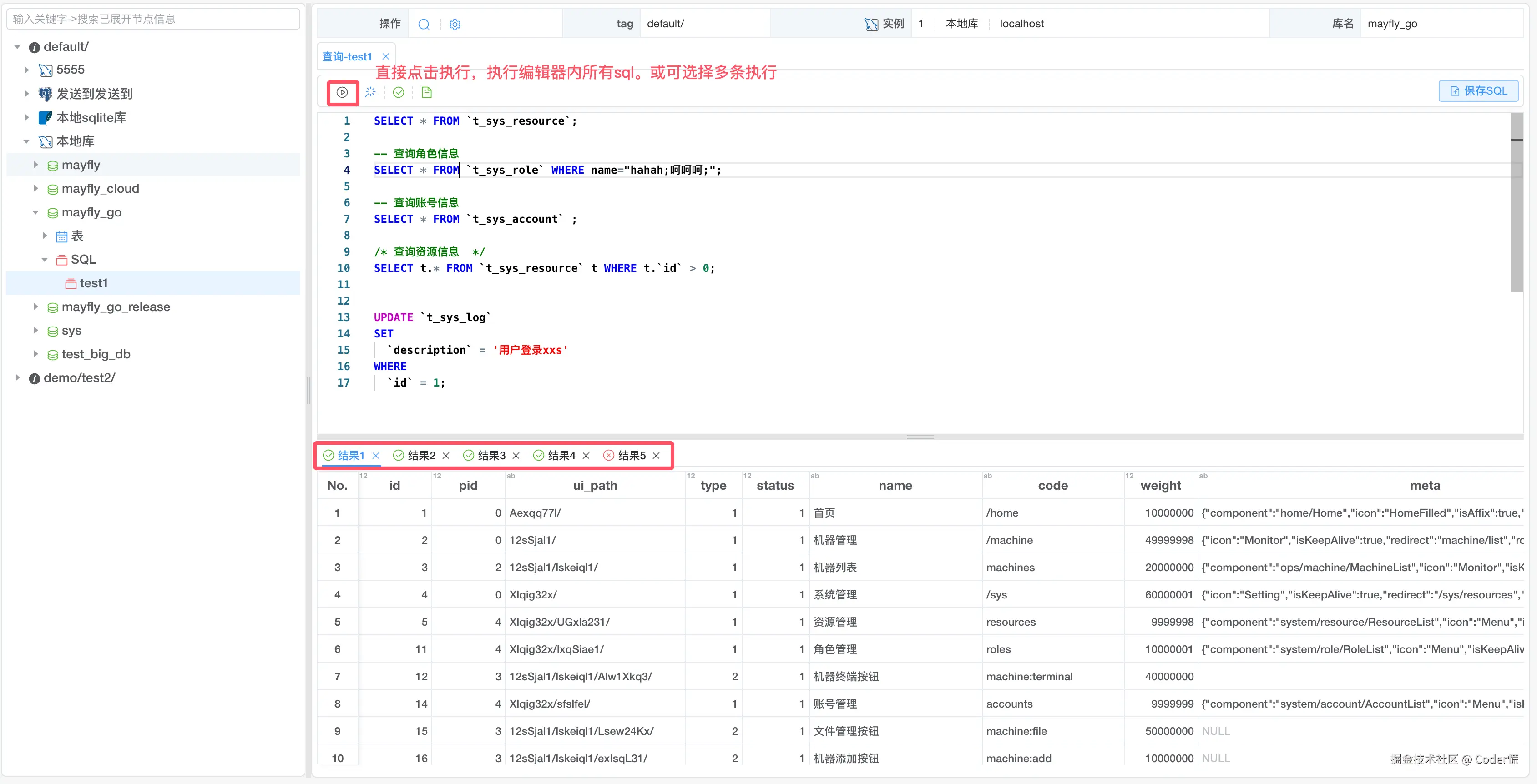 - 🌟 DBMS - 查询框支持一次执行多条SQL(多条sql对应多个结果集tab)