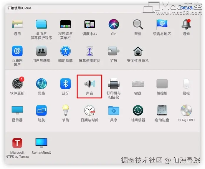 - 在连接蓝牙耳机的状态打开系统偏好设置,找到声音