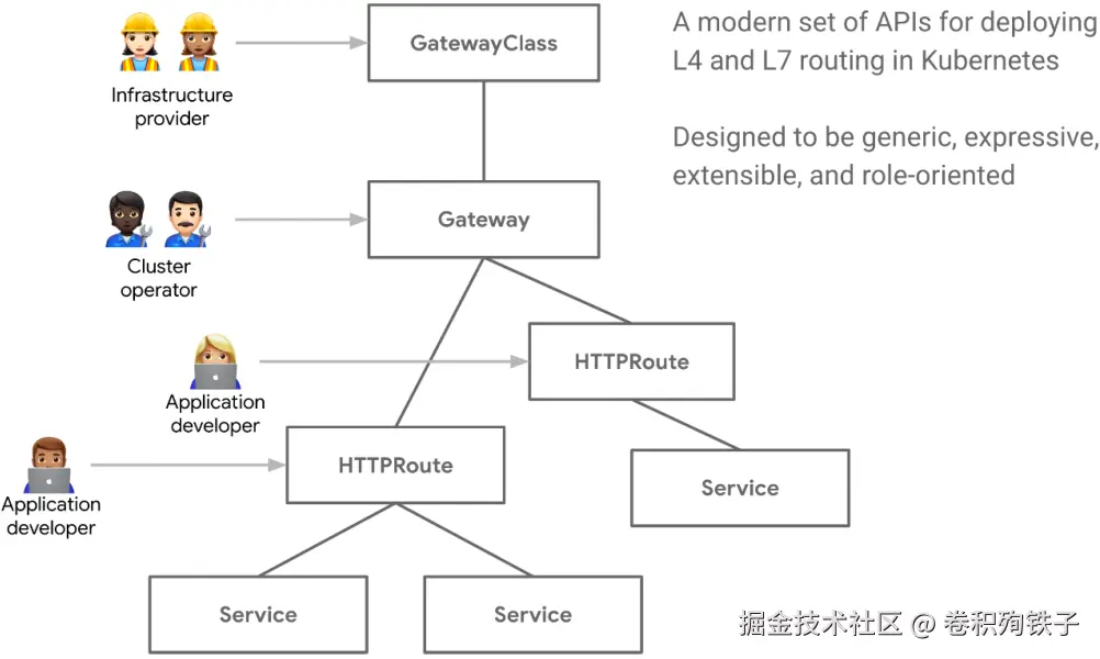 Gateway API 的面向角色特性就是,通过角色划分将各层规则配置关注点分离,实现规则配置上的解耦。