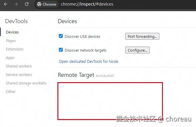 在電腦 Chrome 上打開:chrome://inspect,頁面會顯示已連接的設備,在遠程目標下會顯示已打開的頁面,就可以開始調試了。