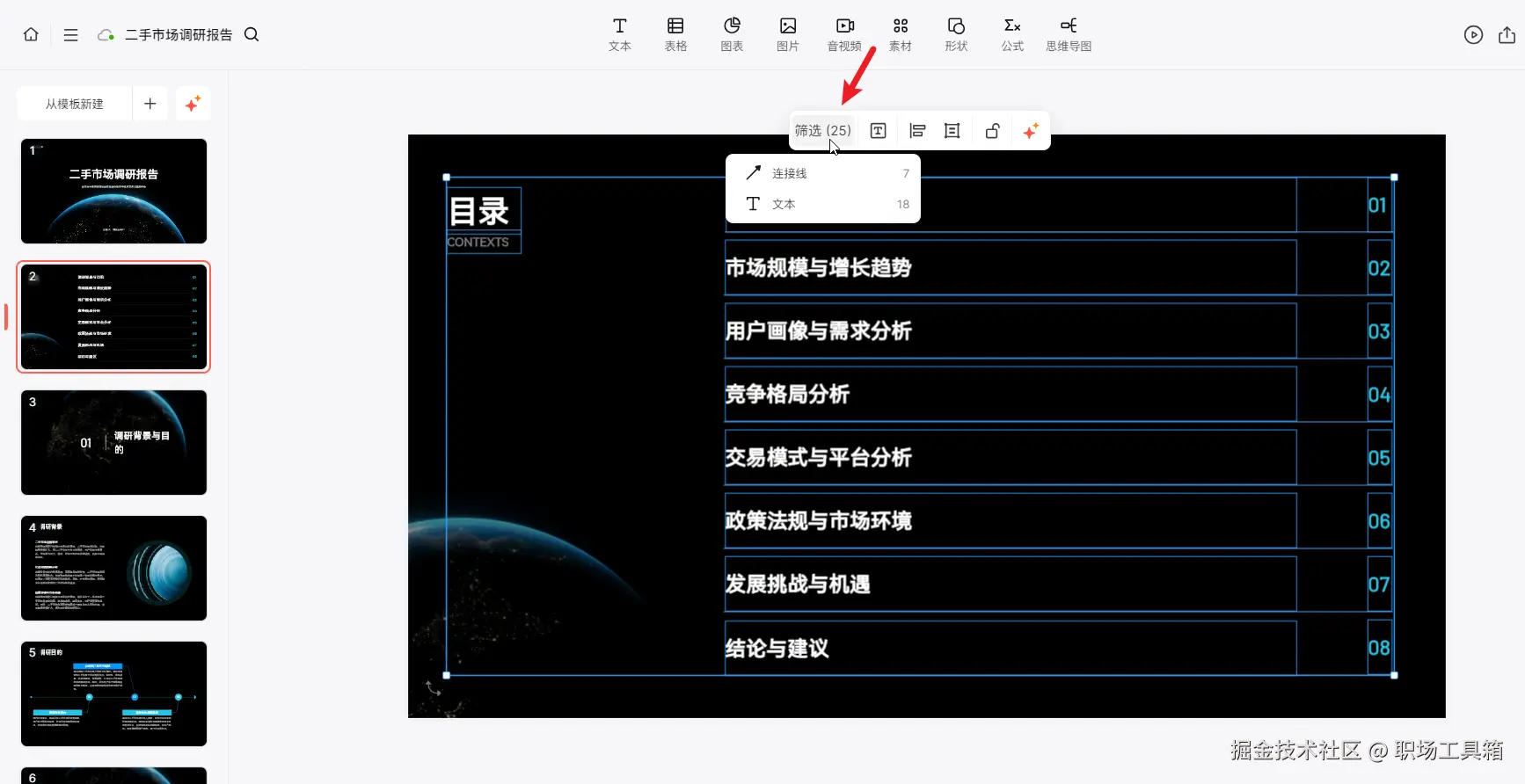 值得一提的是,博思AIPPT还带有一个筛选功能,当我们用鼠标框选页面上的元素时,有可能会选到我们不想要的元素,这时就能使用筛选功能,选出特定元素的同时,剔除不需要的内容,操作效率直接拉满!