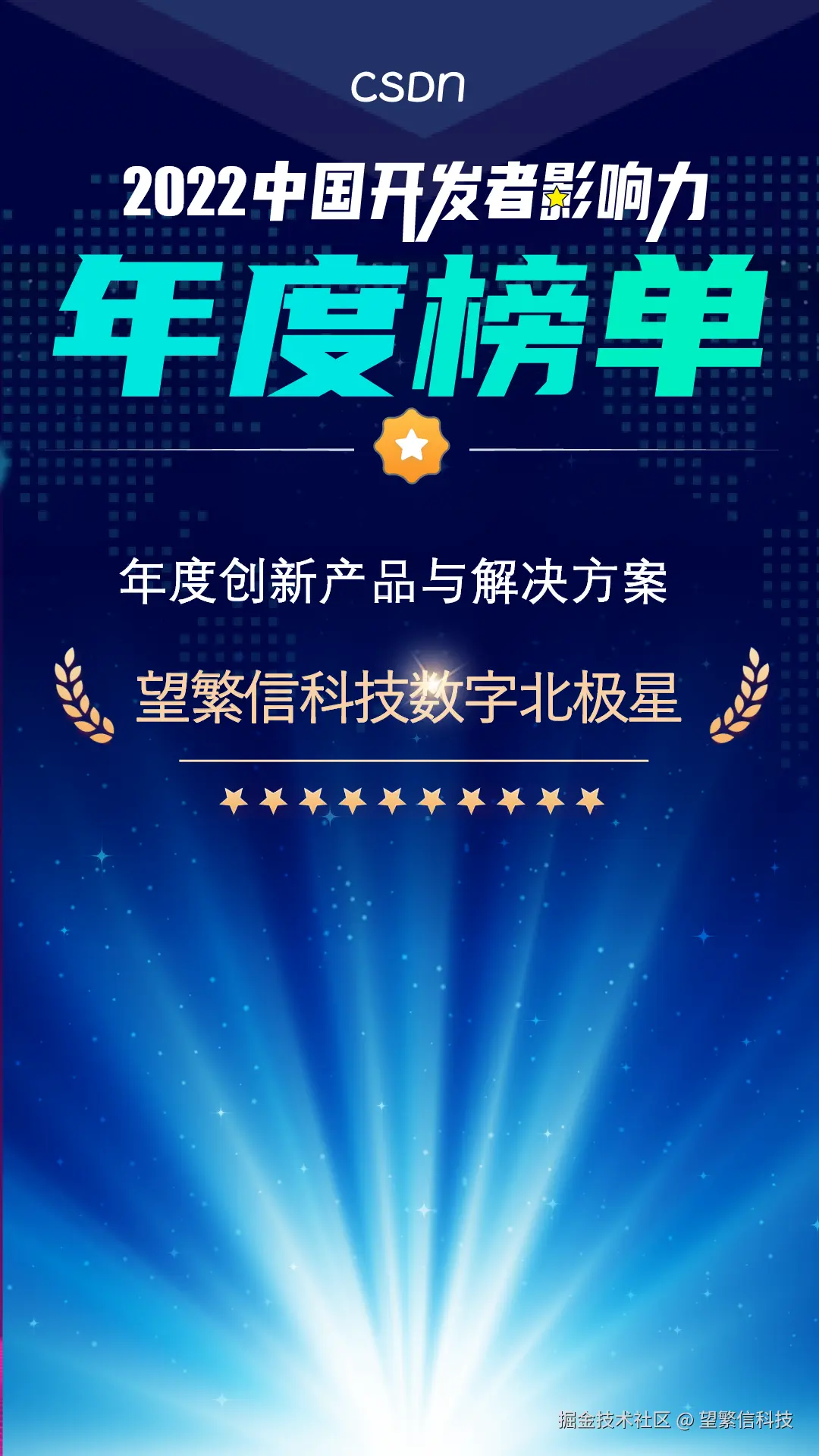 望繁信科技数字北极星凭借行业领先的技术创新与服务能力脱颖而出,与飞书、华为云、腾讯等知名产品共同荣获“年度创新产品与解决方案”奖。