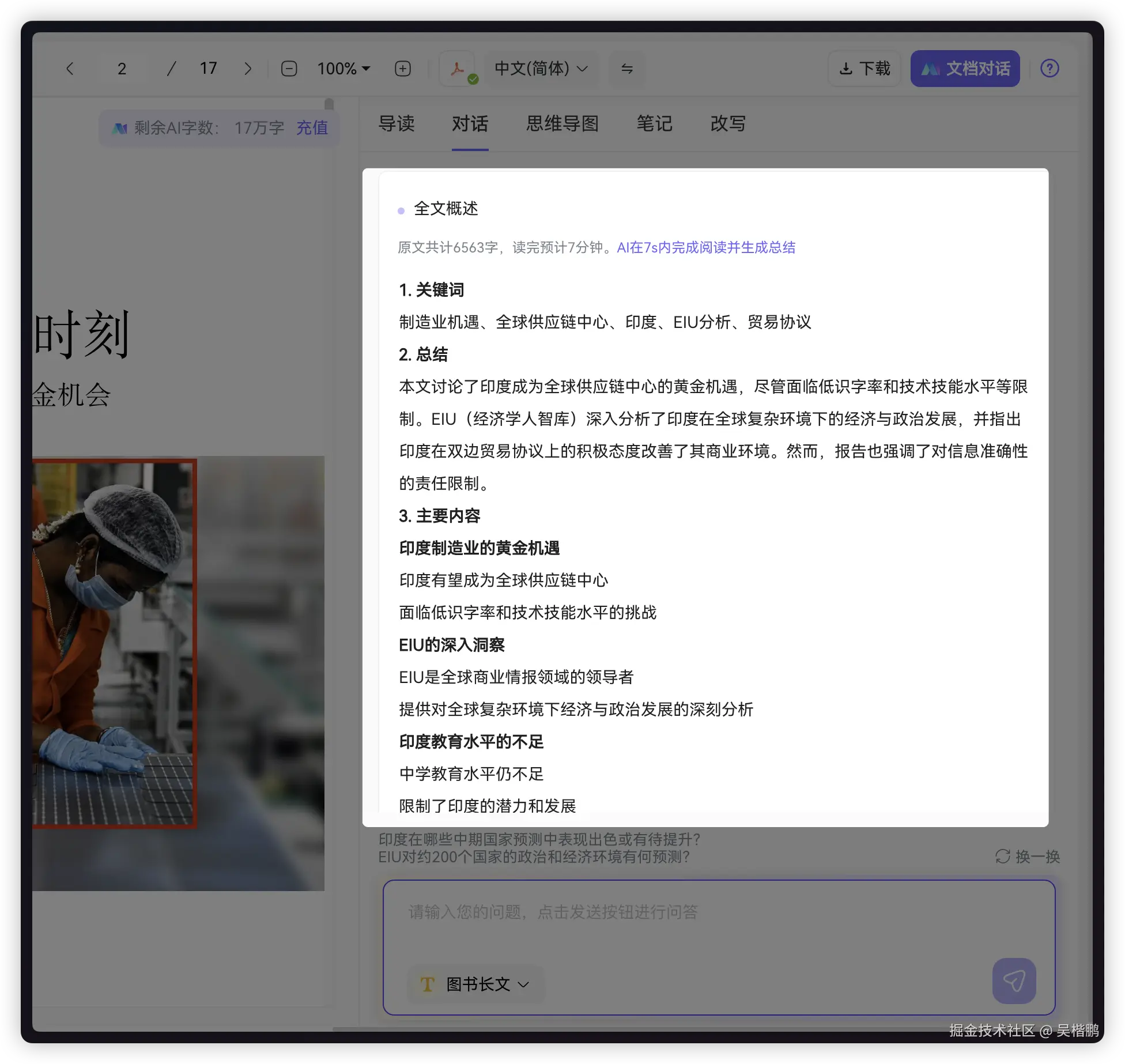 它不仅有刚才提到的思维导图,还有导读,让用户快速了解文章核心要点,以及改写功能,可以对文章进行二次创作等等