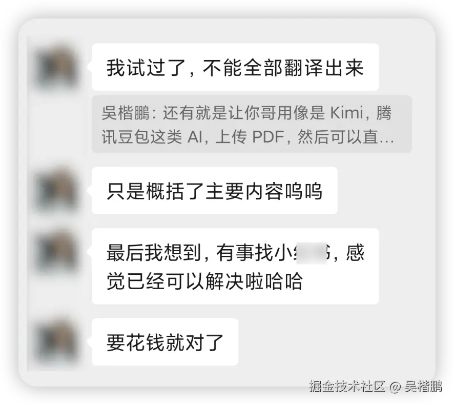 一下子把我问住了,平时只会用 ChatGPT、Kimi、豆包这些简单的问答 AI,要实打实的翻译 PDF 文档场景,还没遇到过
