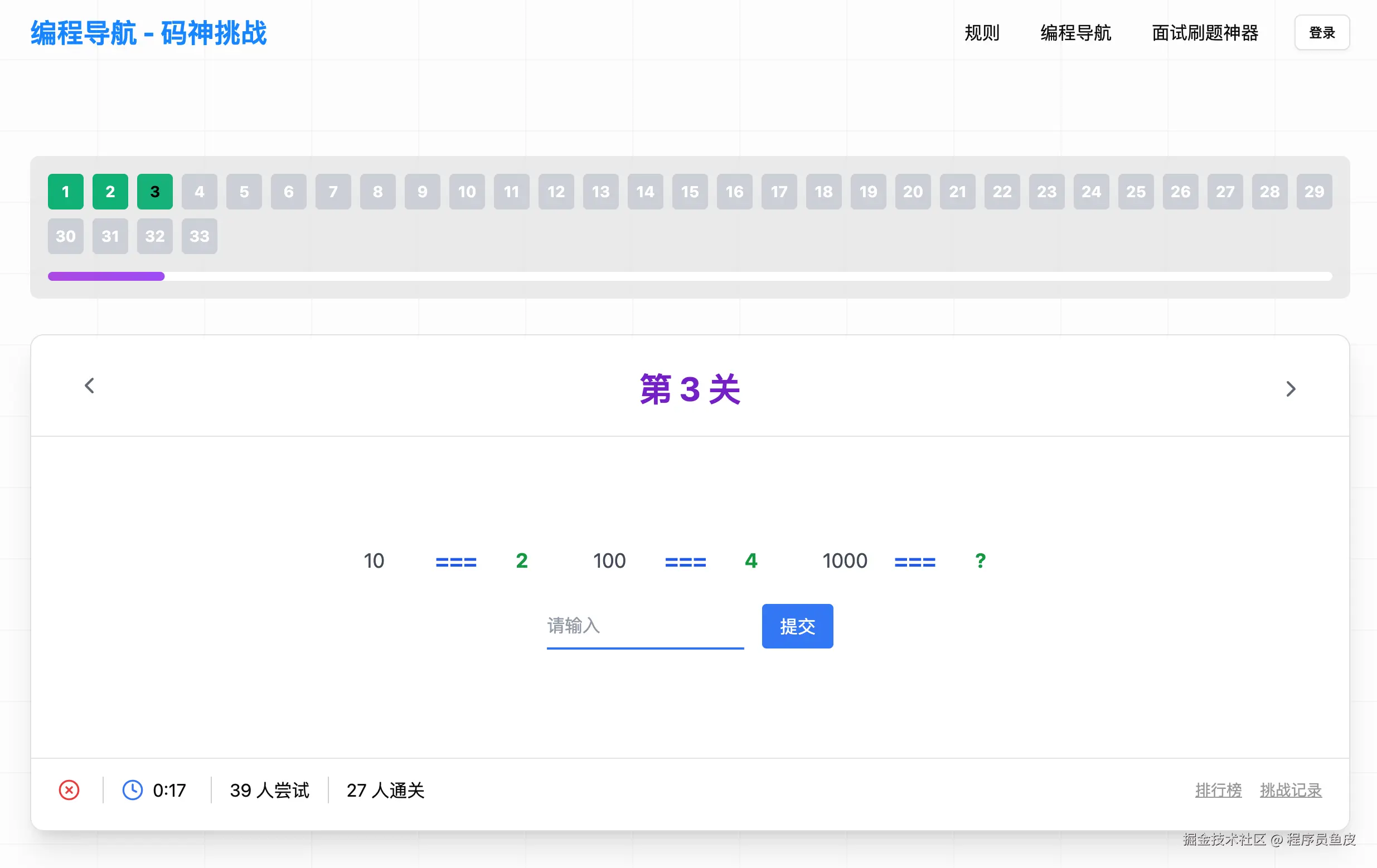 大家可以互帮互助,分享自己的过关攻略和排名哦, 期待第一个通关《码神挑战赛》的高手,会是你么?