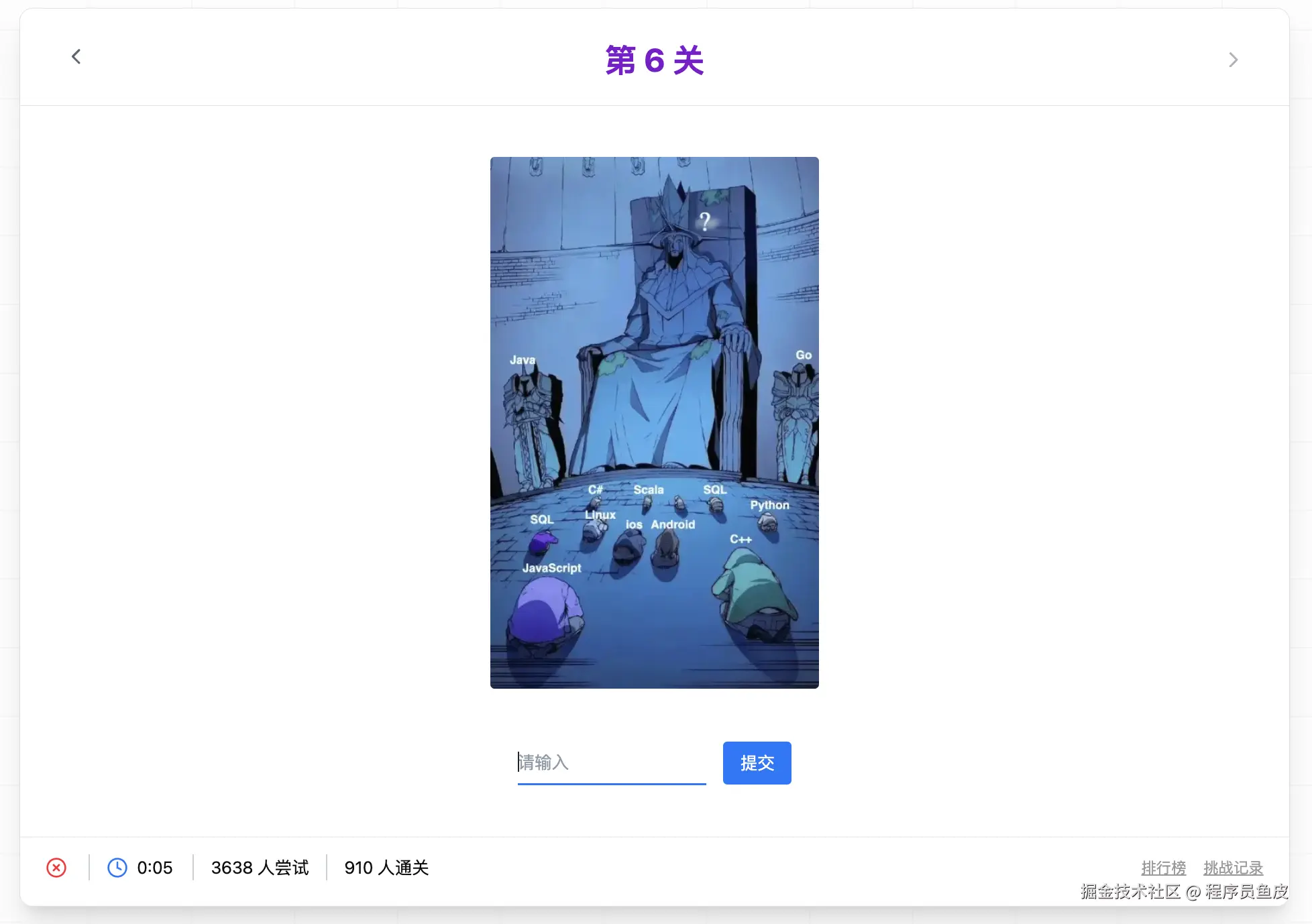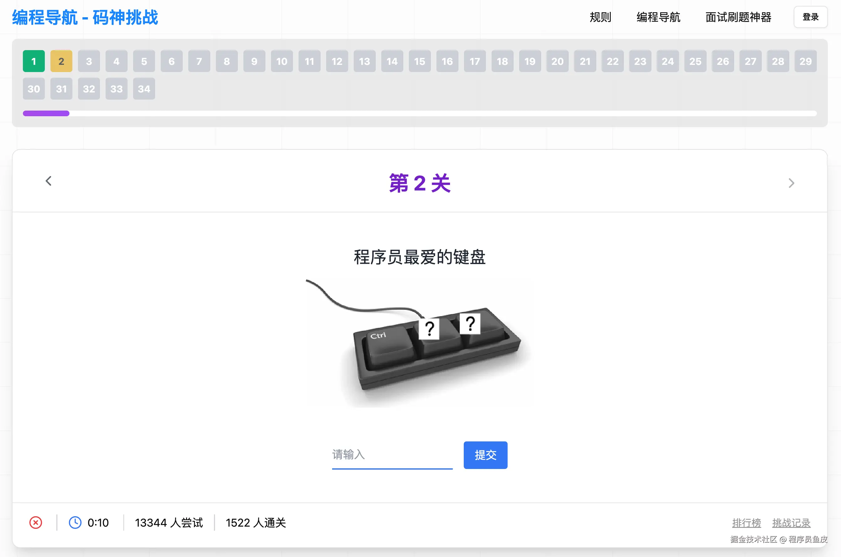 但是要注意,有些题目的难度也是比较大的哦,建议大家尽量发挥想象力,并且多利用搜索引擎或 AI 工具来闯关。哎呀,毕竟这也是程序员的常用操作嘛!