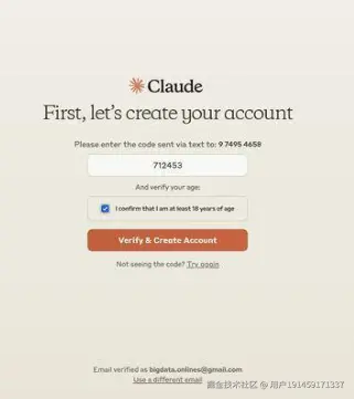 把跳出来对应国家的手机号填到刚刚claude的界面,选择发送验证码,验证码会发到这个接码网站上,把得到的验证码填写完毕,账号就注册成功了 。