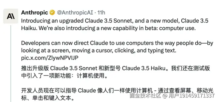 大家期待已久的Claude3.5更新啦,更新内容:推出升级版 Claude 3.5 Sonnet 和新型号 Claude 3.5 Haiku,还有在测试版中引入了一项新功能:计算机使用。