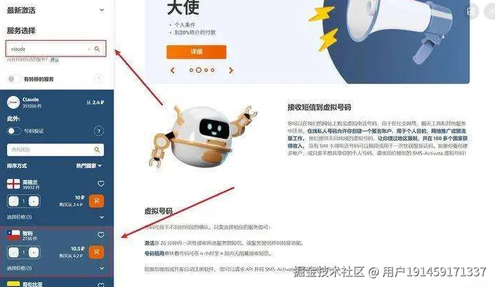 冲完之后在界面左边搜索claude,找一个有号码库存的国家,哪个国家的都行,美国的最好