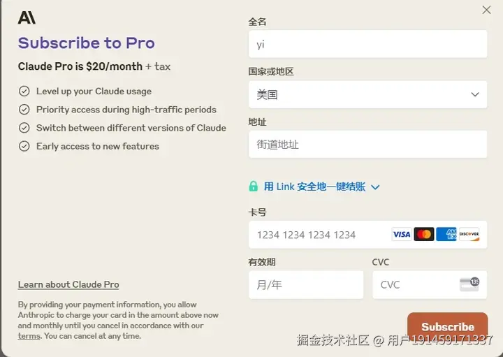 得到CVC信息后,回到claude,选择upgrade to Claude Pro.