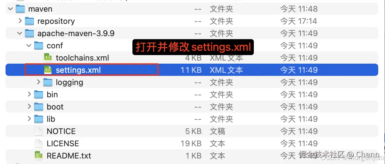 点击进入刚刚的 Maven 安装目录下 ,进入 /conf 文件夹下,编辑 Maven 配置文件 settings.xml :
