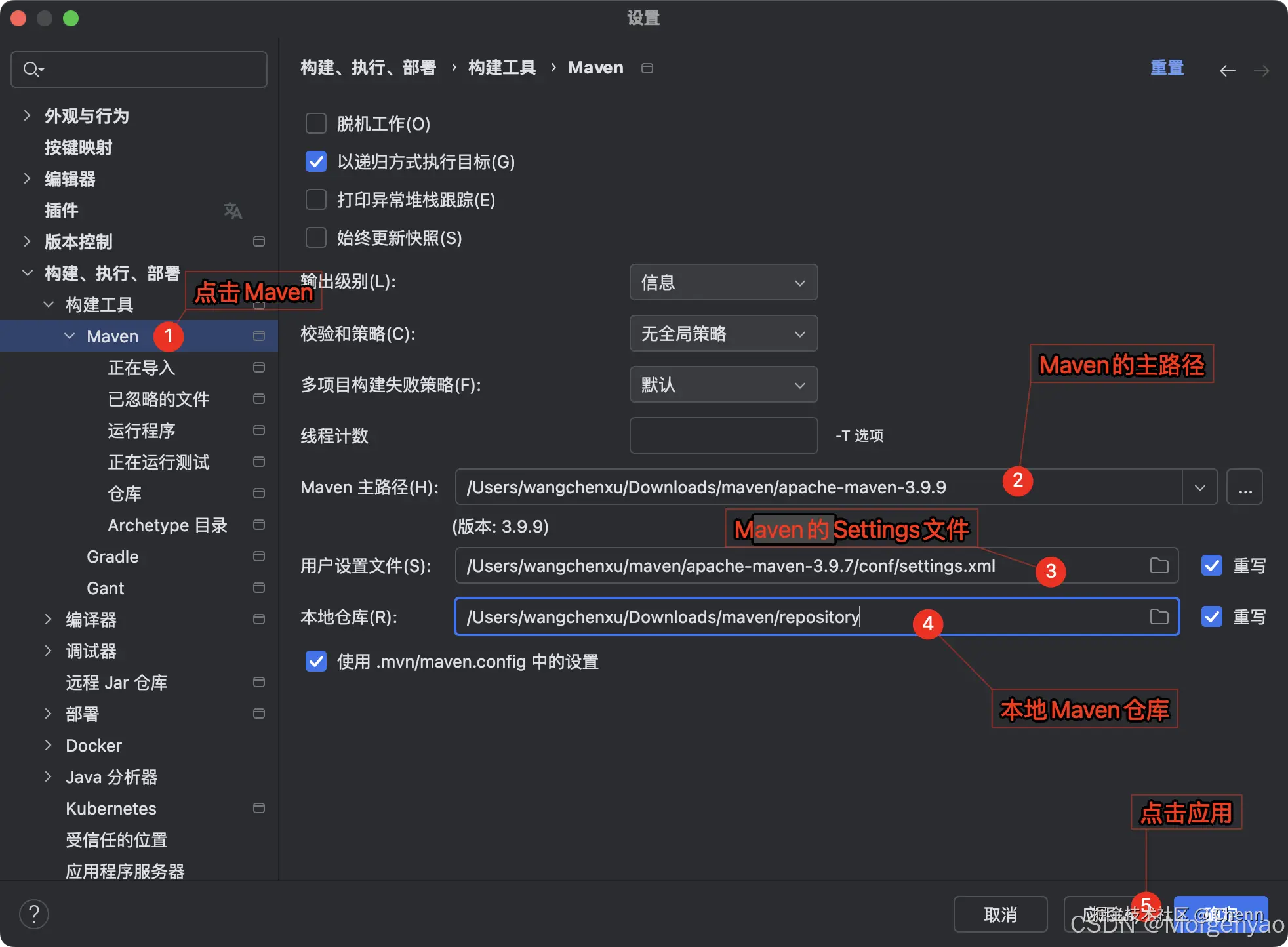 找到 Maven 配置栏,配置如下三点:
