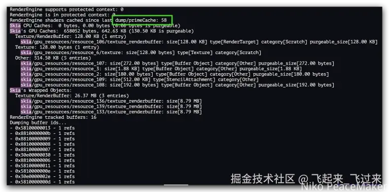 这个Cache如果没有,那么在应用启动期间,如果有机会,还是会生成Cache的。Cache的信息可以从SurfaceFlinger中dump出来。