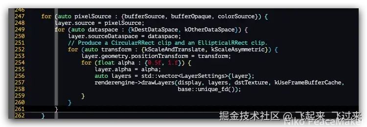 这个Shader缓存是做什么的文章的后面简要介绍一下。先简单讲讲它如何消耗了GPU资源。SkiaRenderEngine在启动过程中,通过若干个长得像下图的多级for循环嵌套绘图来产生GPU Shader缓存。