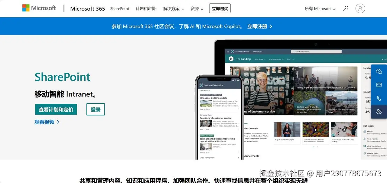 - 集成性强:作为微软Office 365的一部分,集成了文档存储、协作、搜索、工作流等多种功能。
