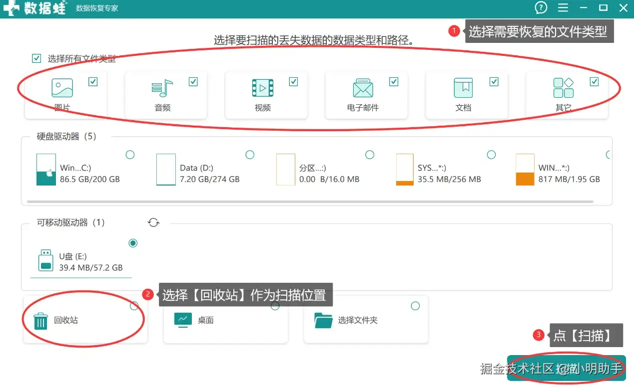回收站清空了还能恢复吗?使用数据 蛙恢复专家能让恢复机会大大增加,具体操作如下: