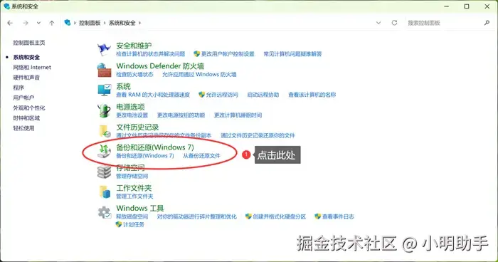 第1步: 打开电脑的【控制面板】,在里面选择【备份与还原】;