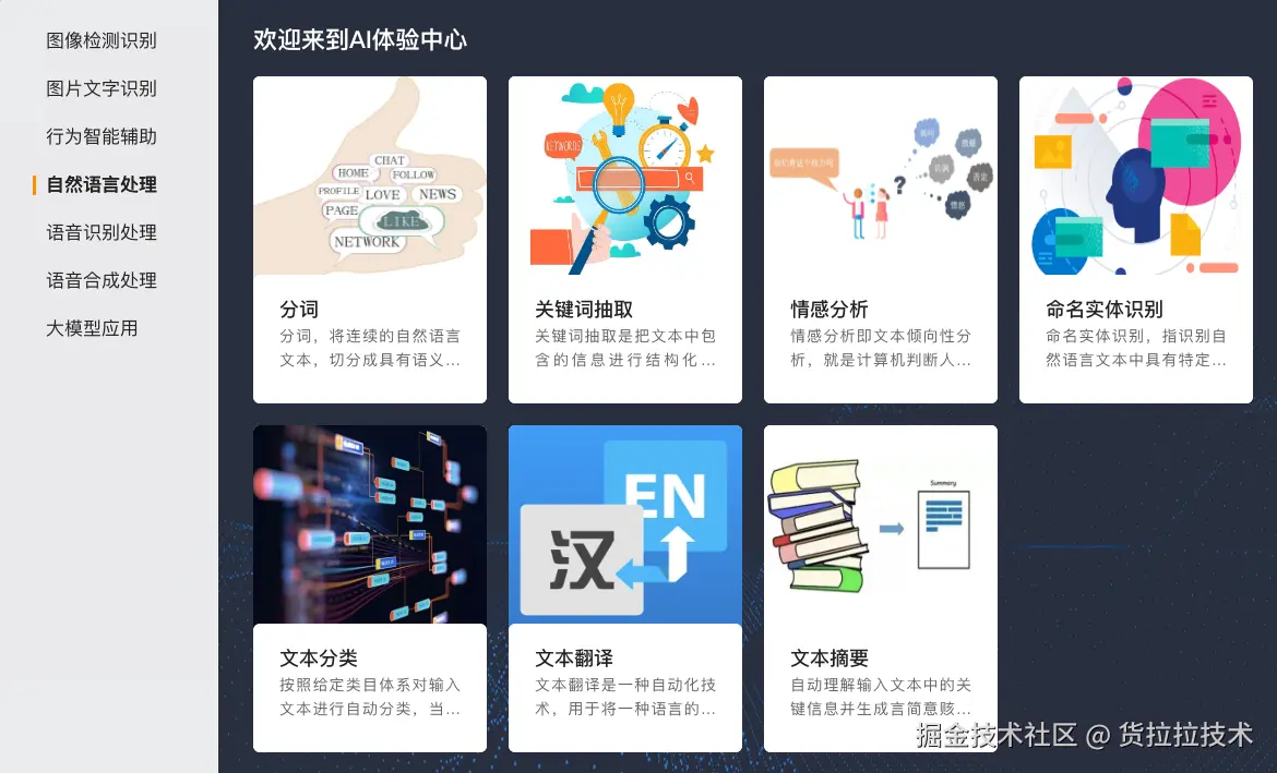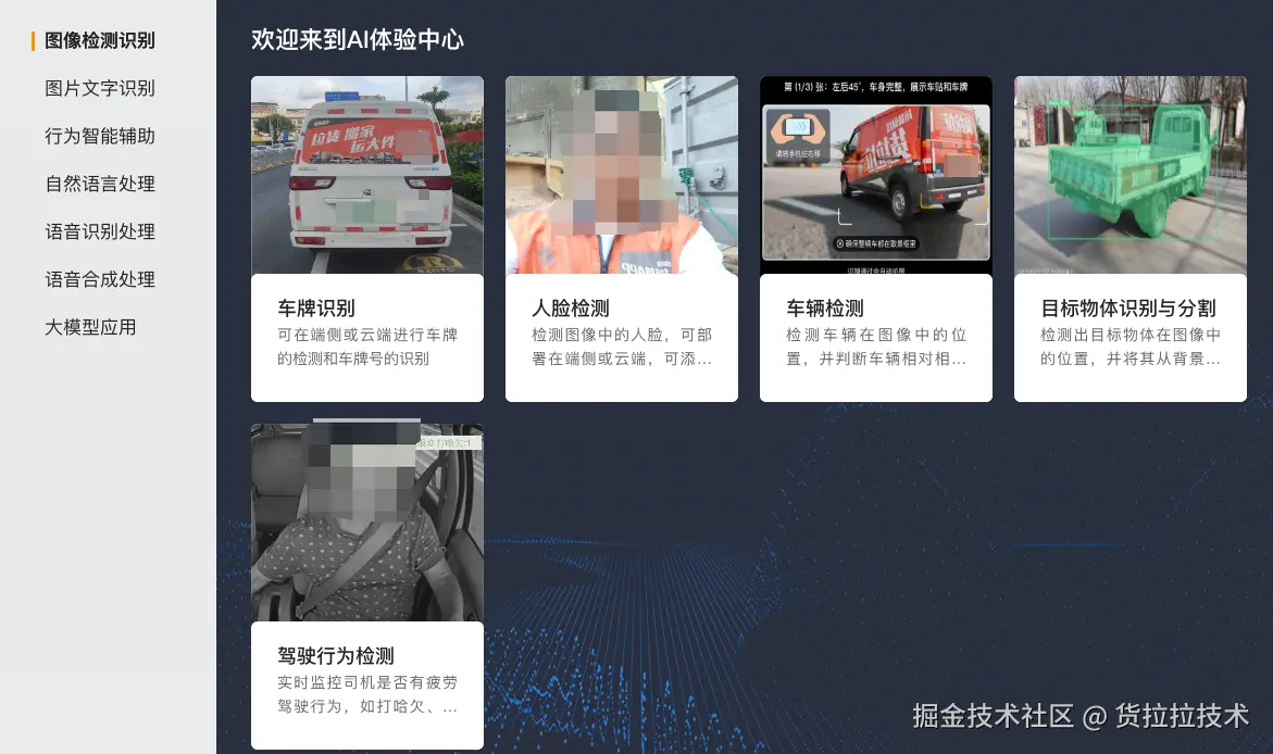 基于海豚平台,结合货拉拉的内部业务需求,我们整理并持续优化了通用场景的 AI 解决方案。平台对图像检测、自然语言处理、语音合成识别等常见的 AI 能力进行了产品化封装,业务方对这些能力无需再次开发可直接快速接入使用。
