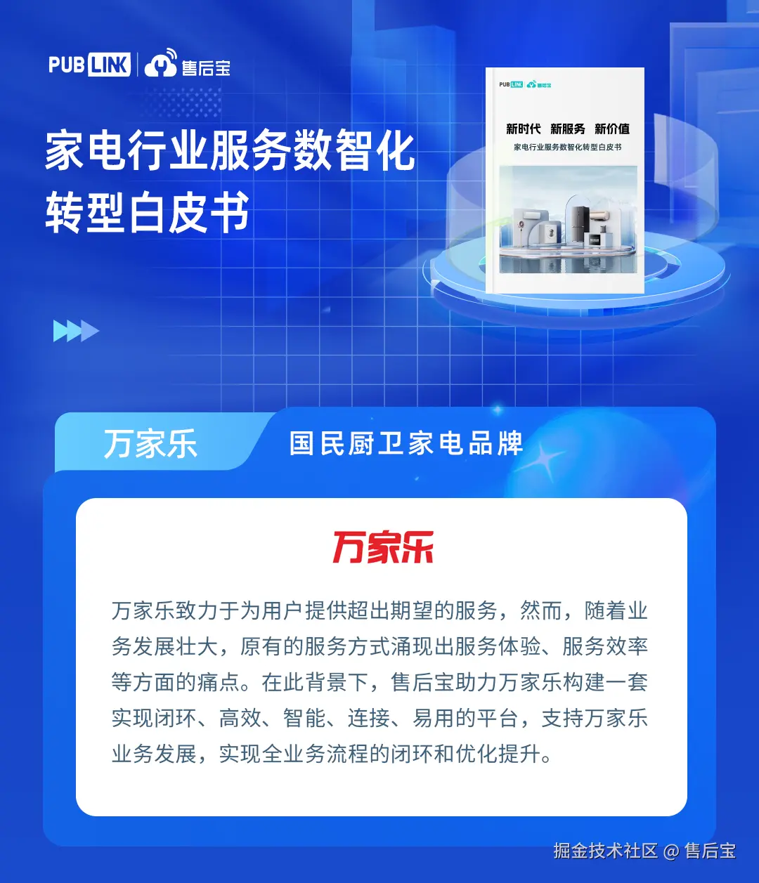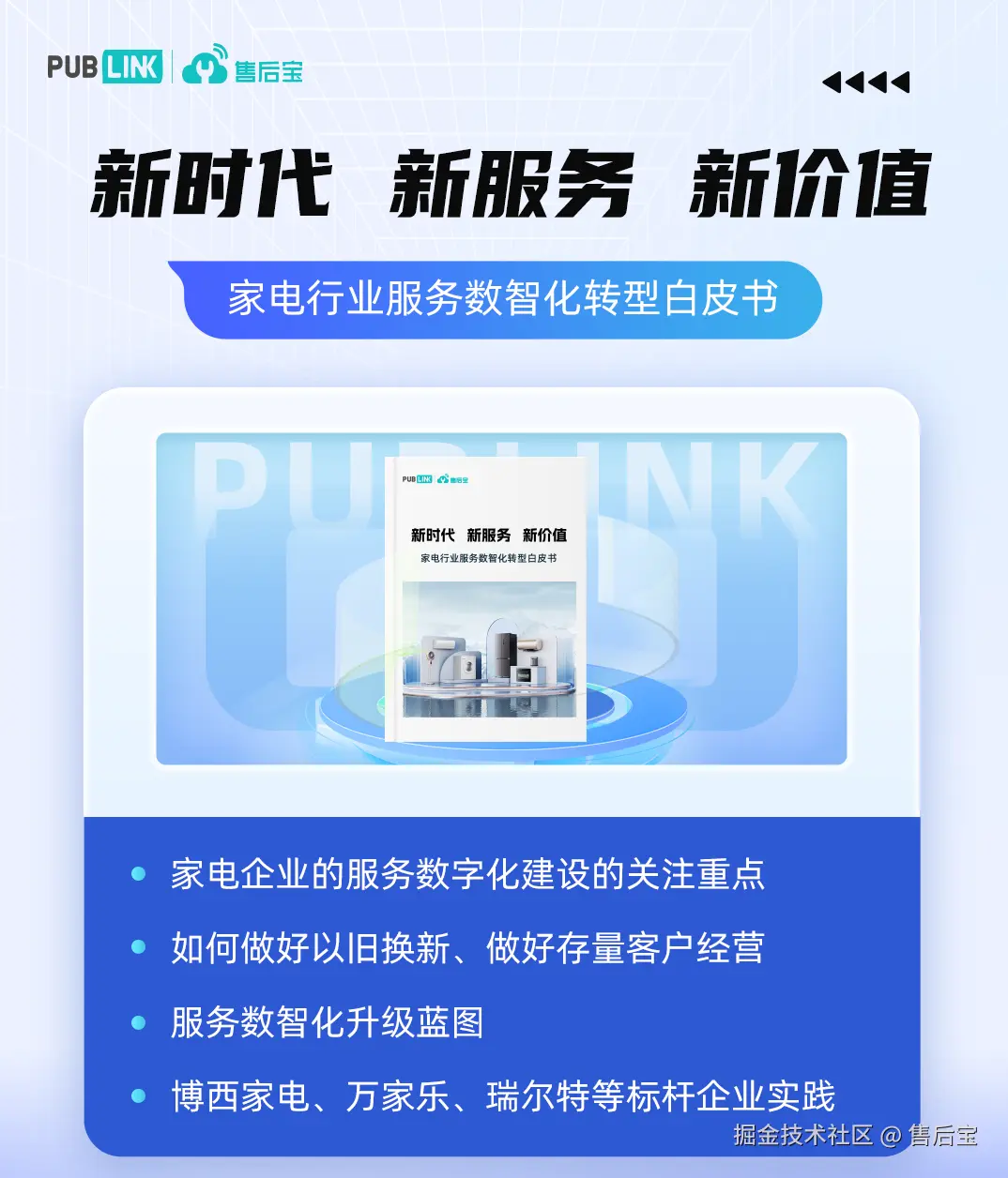 头部家电企业如何做服务?《家电行业服务数智化转型白皮书》告诉你 售后宝 2024-10-24 80 阅读1分钟 世界500强/欧洲最大家电品牌博西家电、国民厨卫家电品牌万家乐、智能卫浴行业冠军品牌瑞尔特等企业是如何做好服务的? 结合家电行业服务业务发展态势,售后宝推出了 《新时代 新服务 新价值——家电行业服务数智化转型白皮书》 ,不仅剖析了上述标杆企业的服务数智化实战经验,还揭示了服务数智化转型的需求与实现路径,为家电企业绘制一幅清晰的服务数智化升级蓝图。